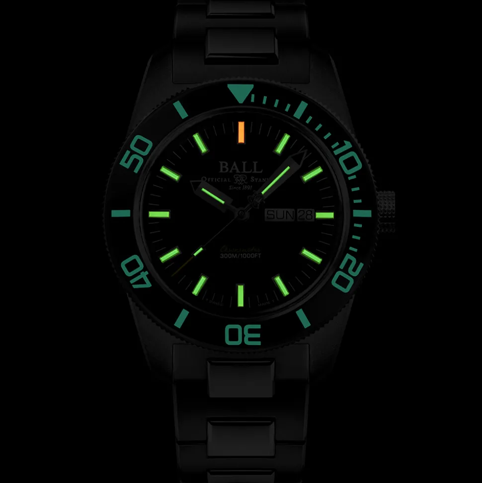 The Ball Engineer Master II Skindiver Heritage is an extension of the sea exploring line which was launched in partnership with multiple world champion constant weight freediver Guillaume Nery. A certified chronometer, it has been tested by the Official Swiss Chronometer Testing Institute (COSC) for its accuracy. To gain COSC certification, it must be accurate to -4/+6 seconds per day. Find out more about COSC here.