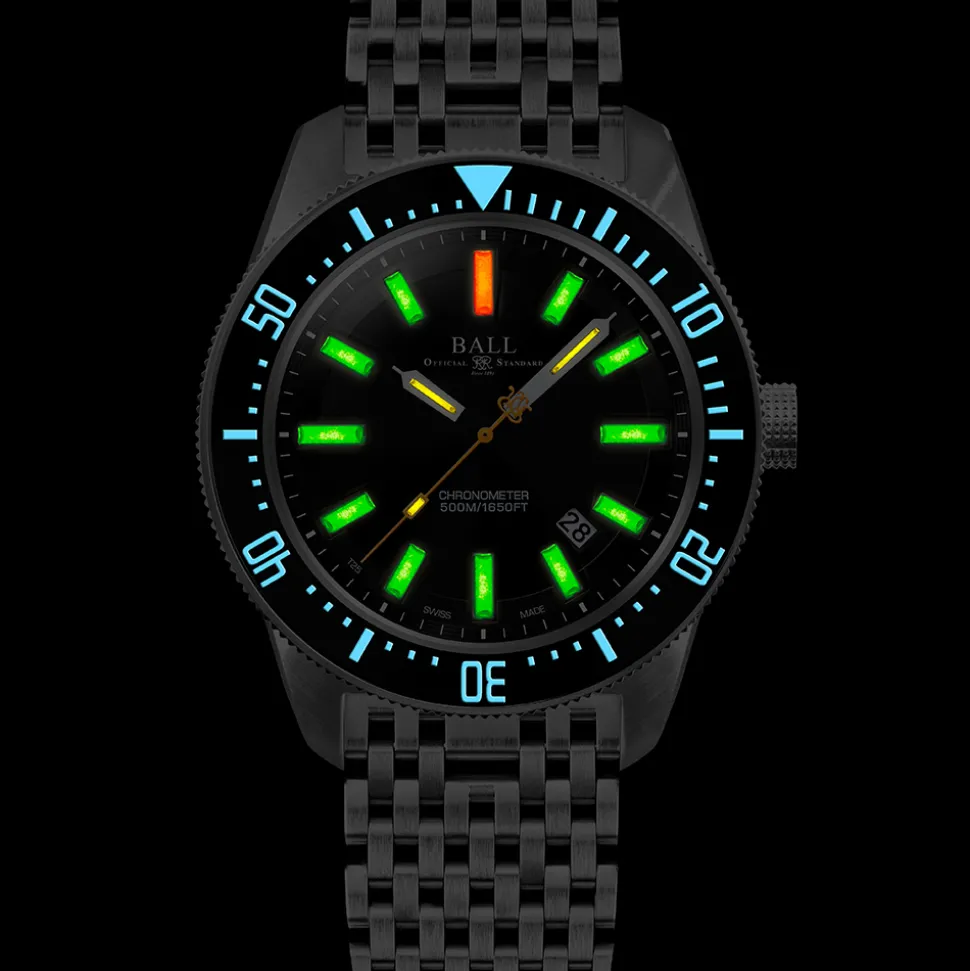 The Ball Engineer Master II Skindiver II is an extension of the sea exploring line which was launched in partnership with multiple world champion constant weight freediver Guillaume Nery. A certified chronometer, it has been tested by the Official Swiss Chronometer Testing Institute (COSC) for its accuracy. To gain COSC certification, it must be accurate to -4/+6 seconds per day. Find out more about COSC here.