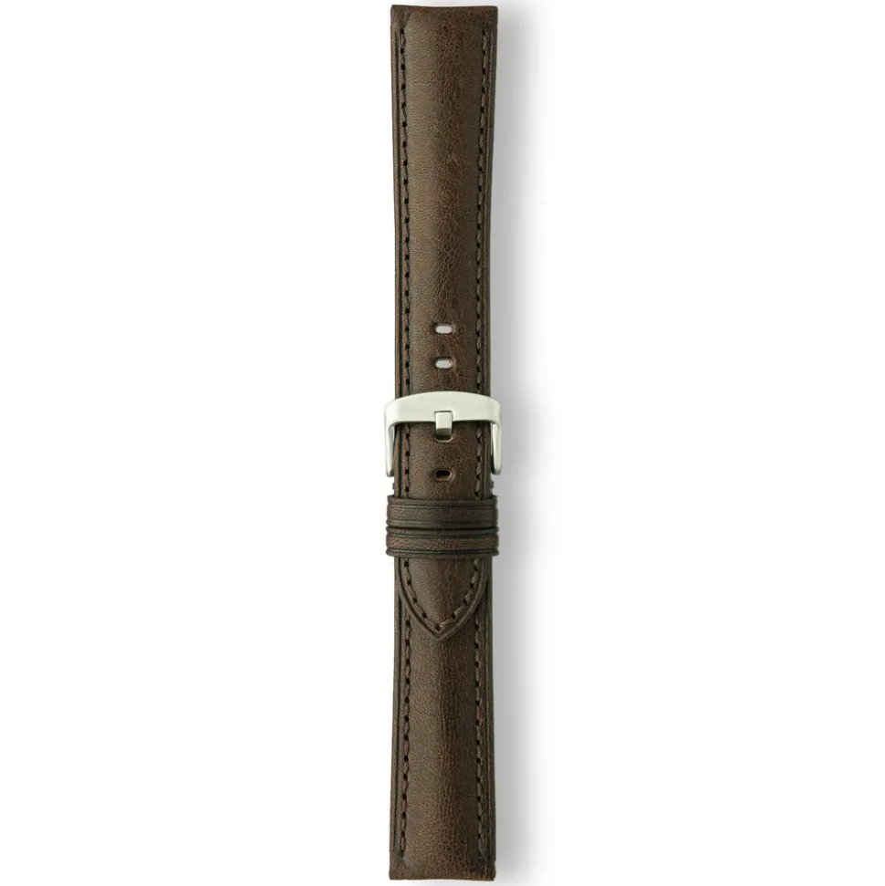 Furthermore, matching brown stitching adds to the overall high finish. Moreover, a nubuck lining ensures comfort at all times. Finally, a heavy-duty, brushed pin buckle in either gold or silver tone stainless steel, secures the strap to the wrist. Oval holes add a contemporary touch and correspond with the square tongue of the buckle.