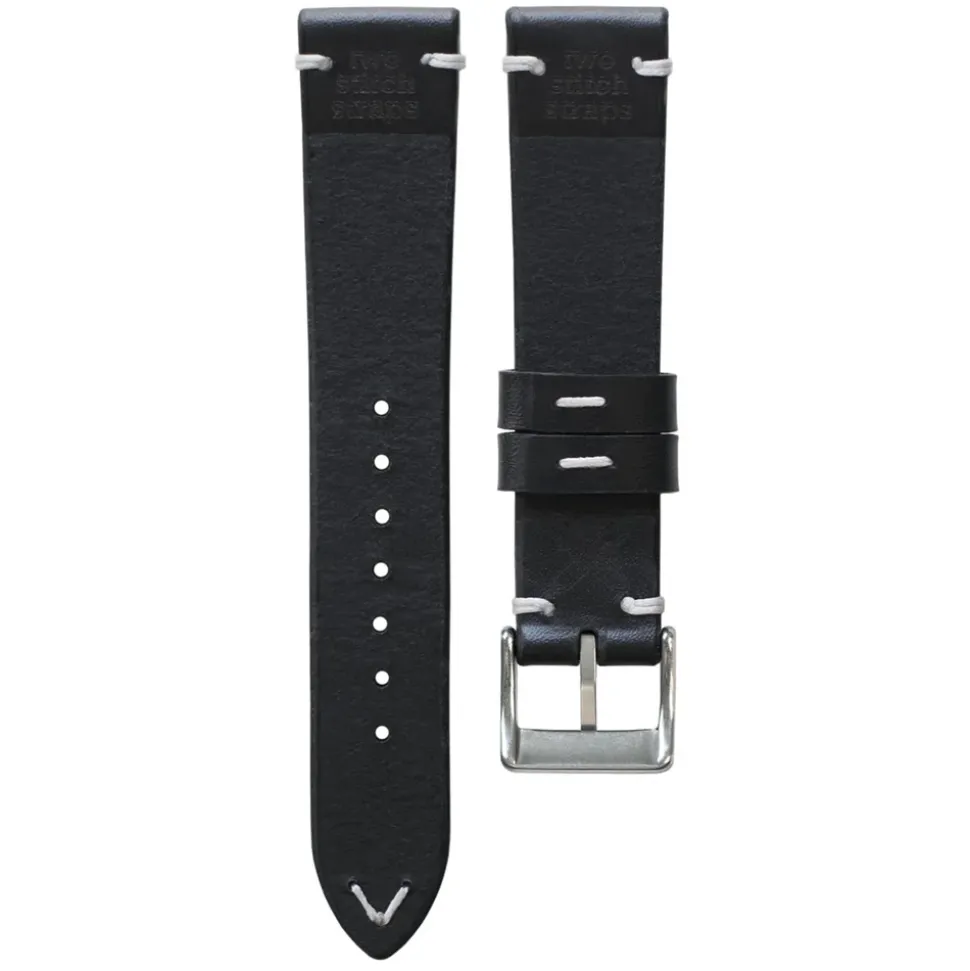 Thanks to its simple design, this strap allows your watch to stand out. Also, with its flat profile and versatile black colour, it will suit a variety of watches. Furthermore, two stitches at the ends and tip add a vintage detail to this strap.