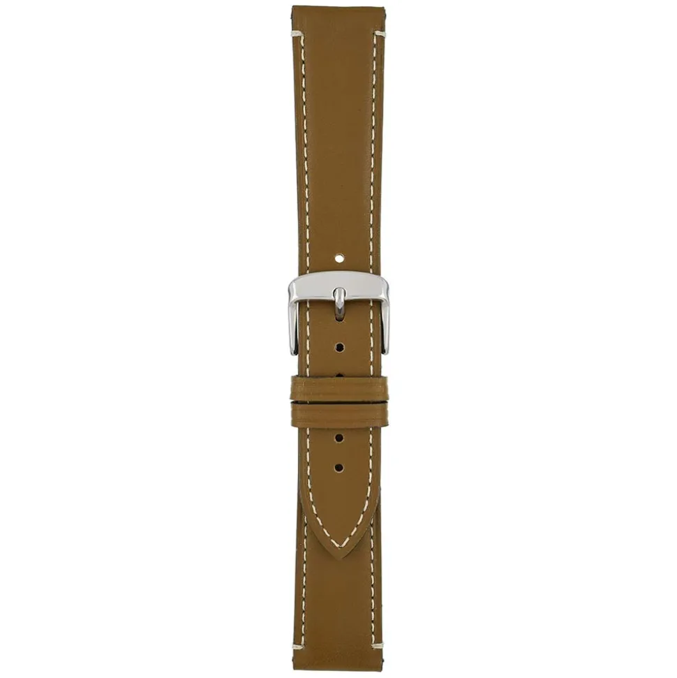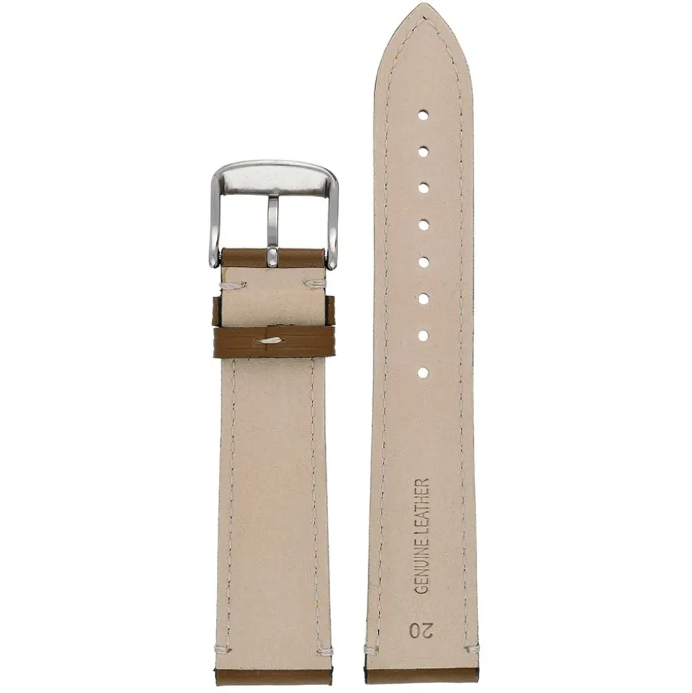 Furthermore, white contrast stitching adds a beautiful detail to this strap. Also, the thumb-shaped stainless steel buckle has a sleek, modern profile.