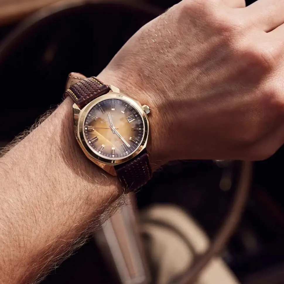 The Bulova Jet Star Gold Tone Watch comes straight out of the 1970’s. Based on the 1973 Jet Star “F”, this iconic model is now equipped with Bulova’s Precisionist movement, bringing it bang up to date.