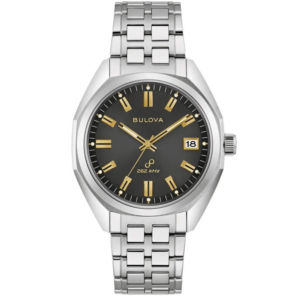 The Bulova Jet Star Grey Dial Watch comes straight out of the 1970’s. Based on the 1973 Jet Star “F”, this iconic model is now equipped with Bulova’s Precisionist movement, bringing it bang up to date.