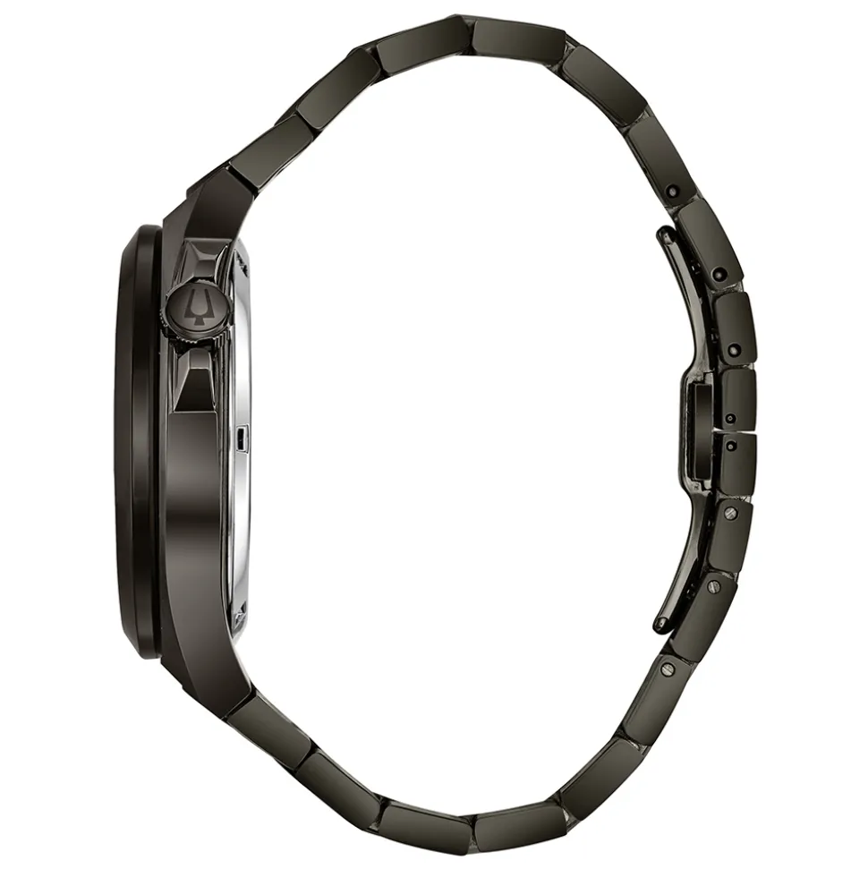 - Gunmetal Ion Plated stainless steel case, 46mm diameter, 13mm depth