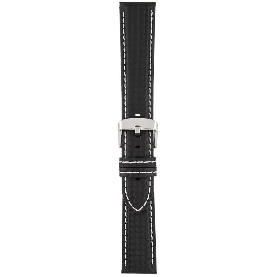 This Black Carbon Fibre Grain Watch Strap is perfect for sports watches and racing models. Available in 4 popular sizes from 18mm to 24mm, it has a checked carbon fibre grain.