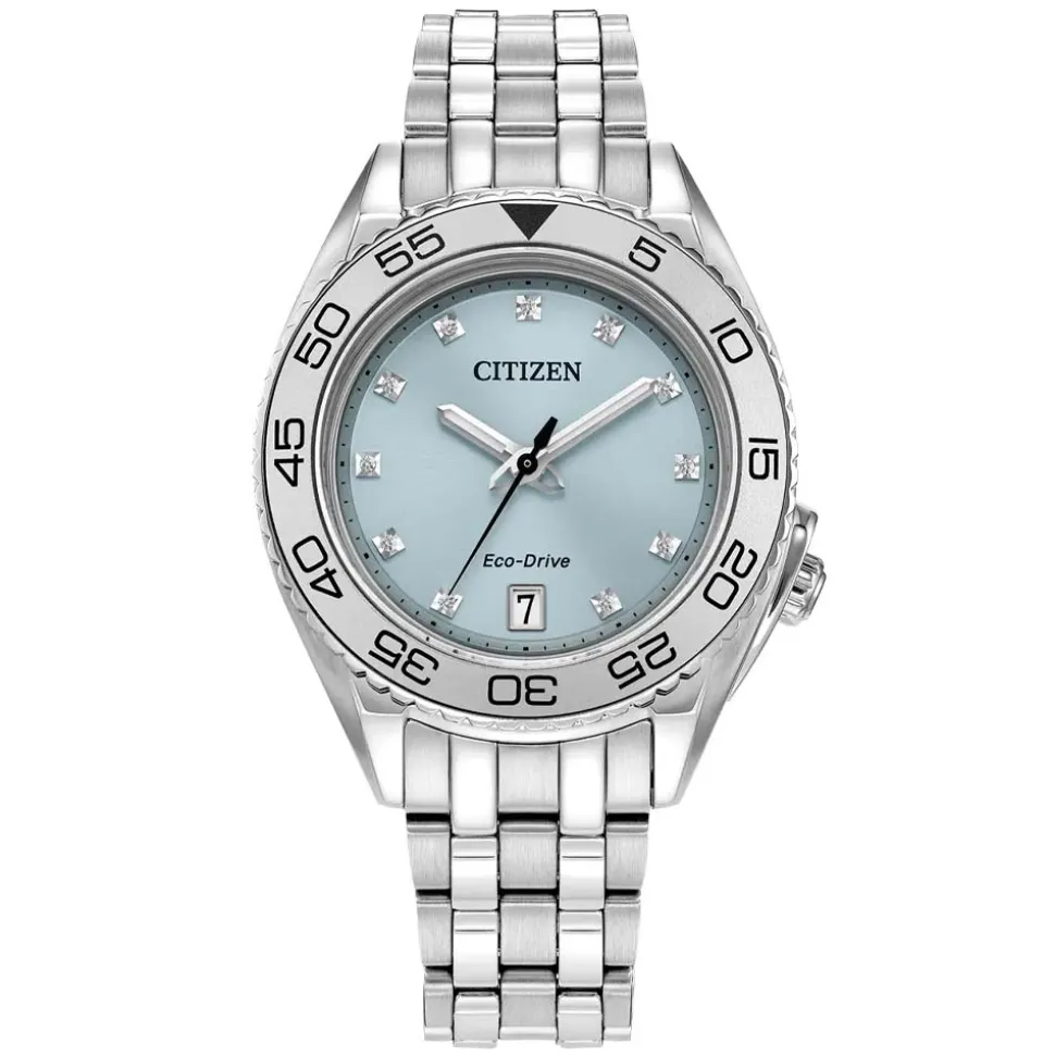 Add some sparkle to your wrist with this attractive Citizen Light Blue Diamond Dial Watch. It combines comfort and sophistication, making it perfect for day or night.