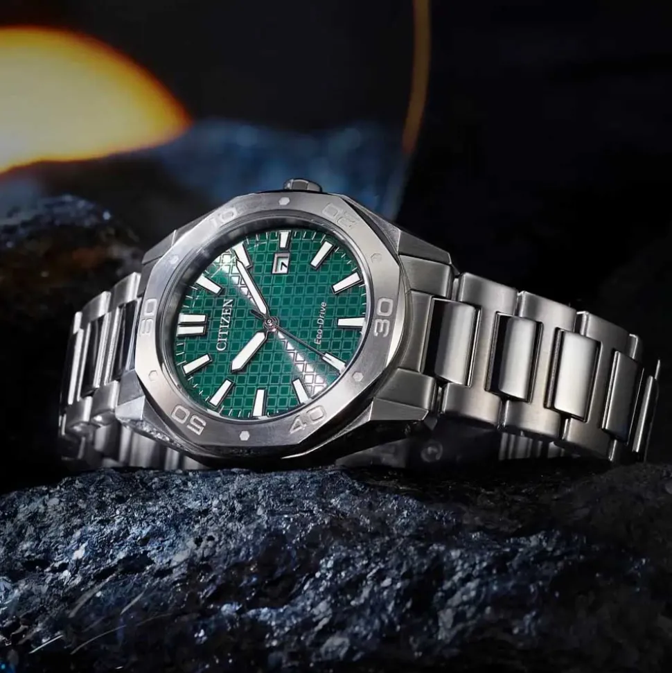 The Citizen Men’s Sport Green Waffle Dial Watch empowers you to seamlessly transition from work to play. New for 2024, it caters to anyone seeking a sporty, water-resistant watch with undeniable wrist presence.