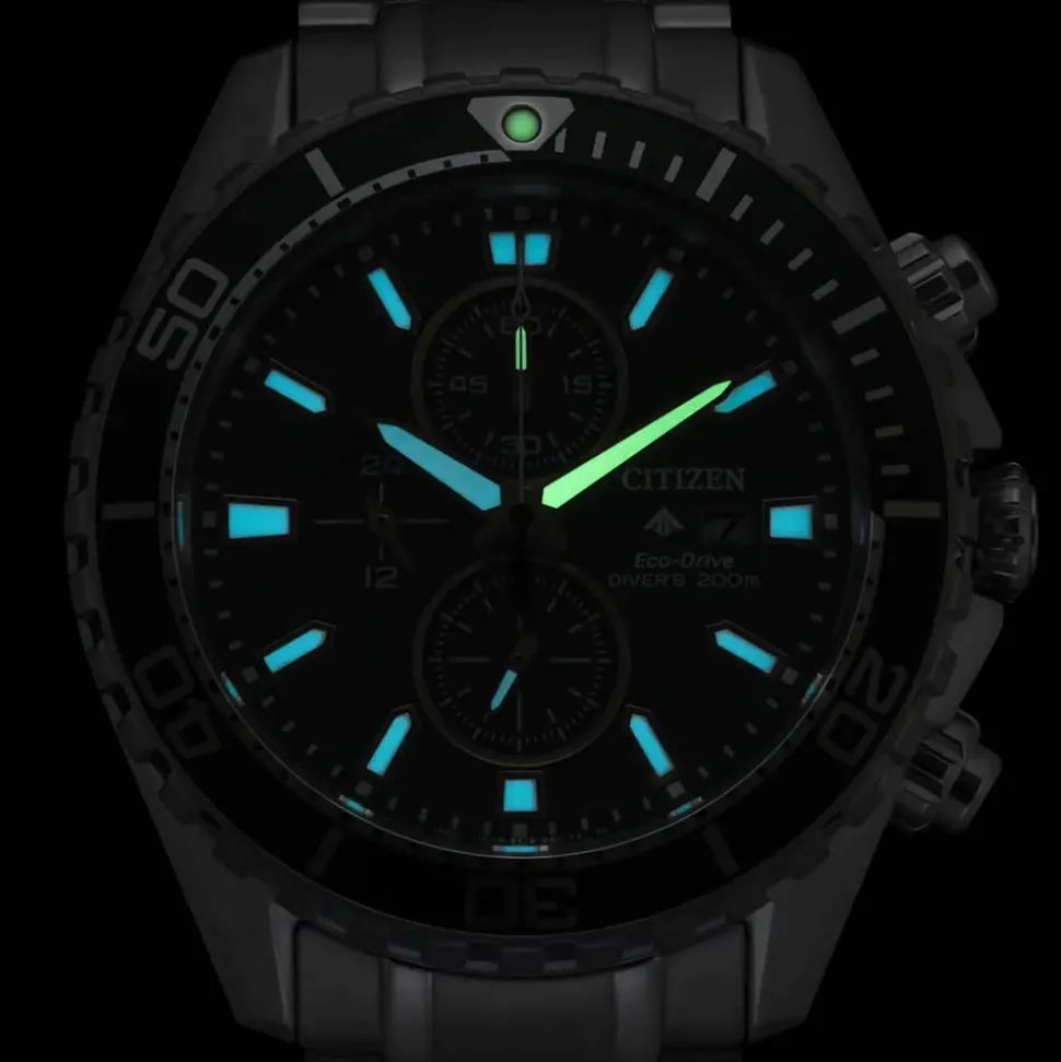Water resistant to 20 bars (200m), the Promaster Chronograph has a screwed caseback. The crown also screws in to the case. Furthermore, it’s ISO Compliant so you can be sure its water resistance has been rigorously tested.