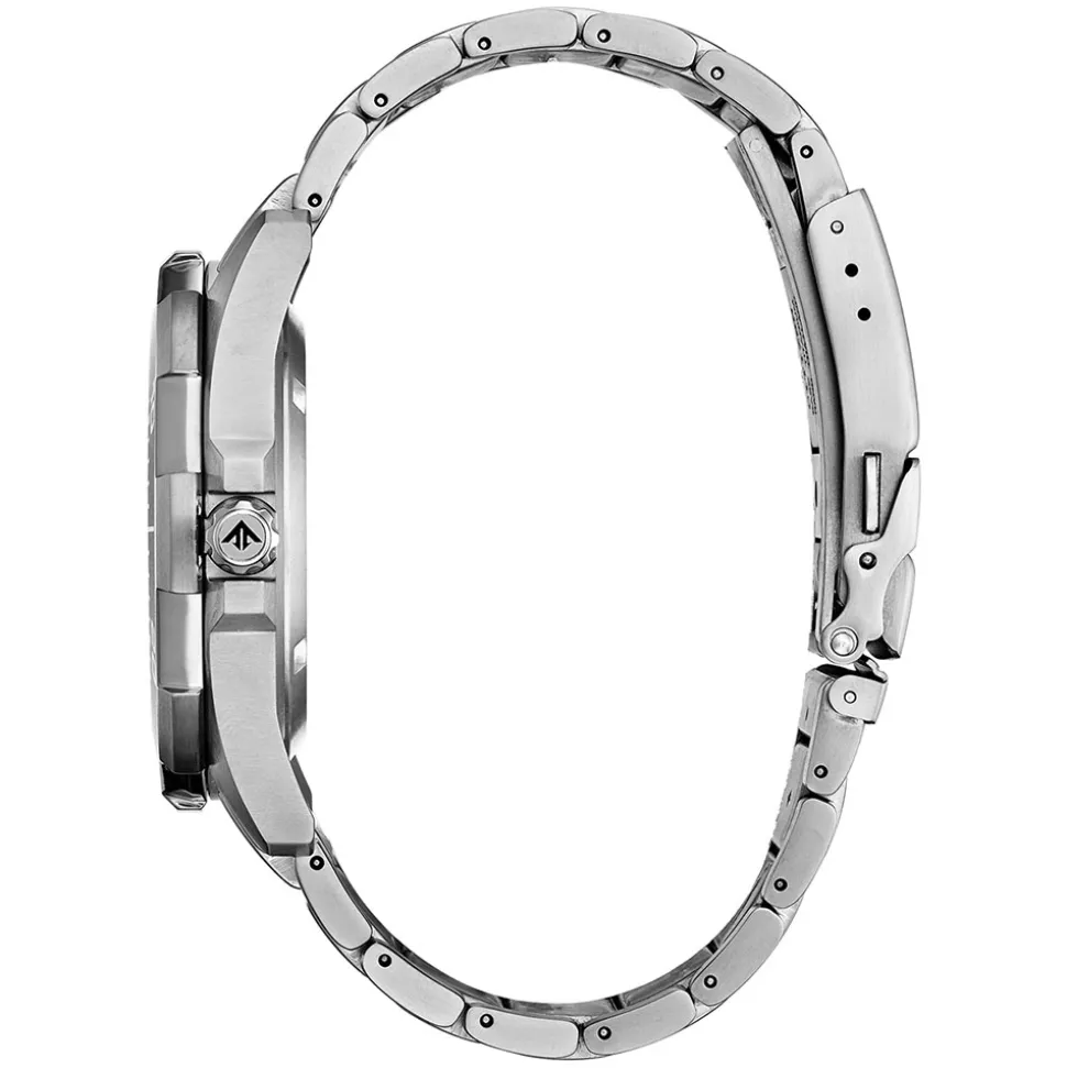 - Silver tone Super Titanium™ case, 44mm diameter with uni-directional aluminium rotating bezel