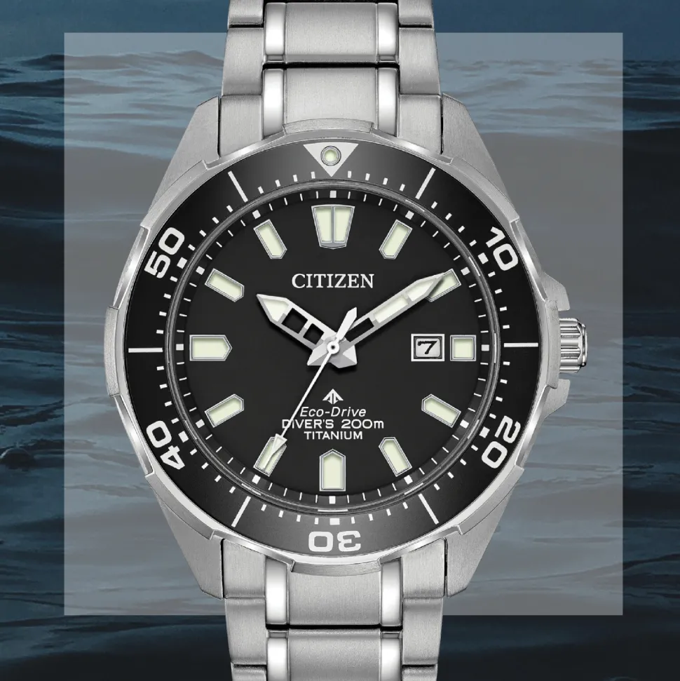 The Citizen Promaster Diver Super Titanium Watch is fully equipped with all the features you’d expect from an ISO compliant diving watch.