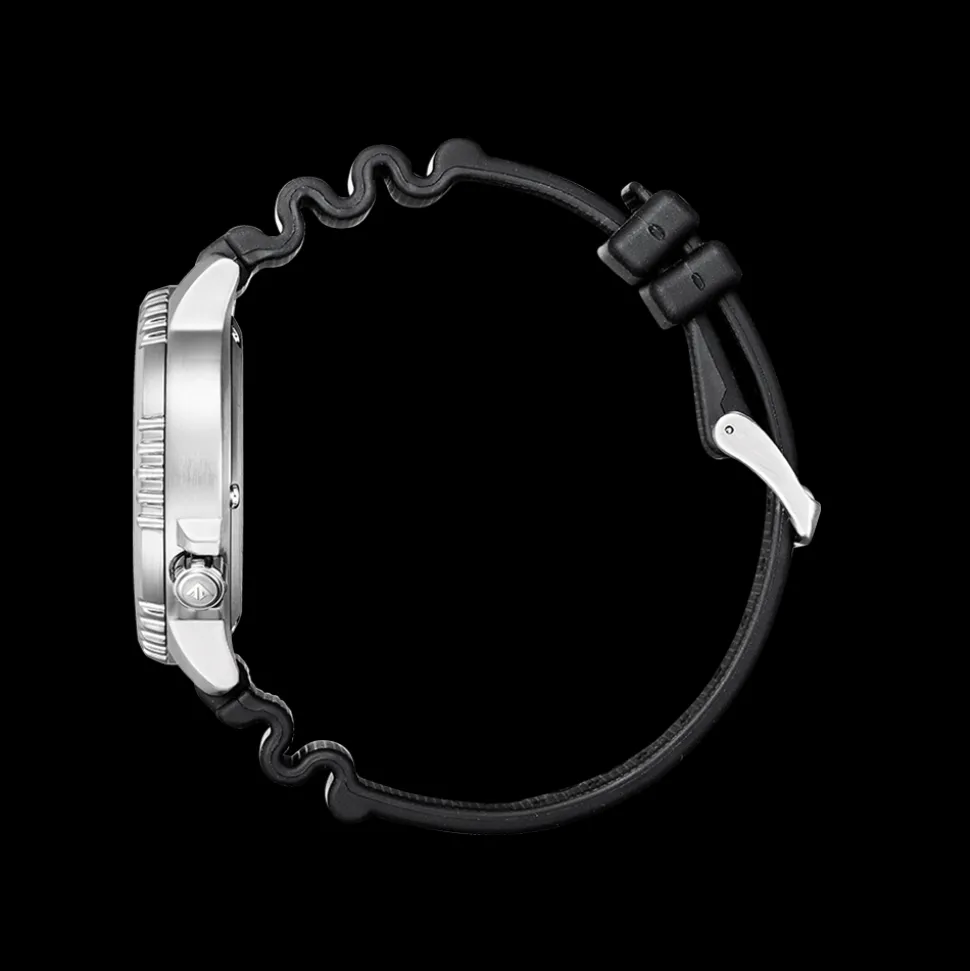 Water resistant to 20 bars (200m), the watch has a screwed caseback. The heavy duty Promaster crown also screws in to the case.