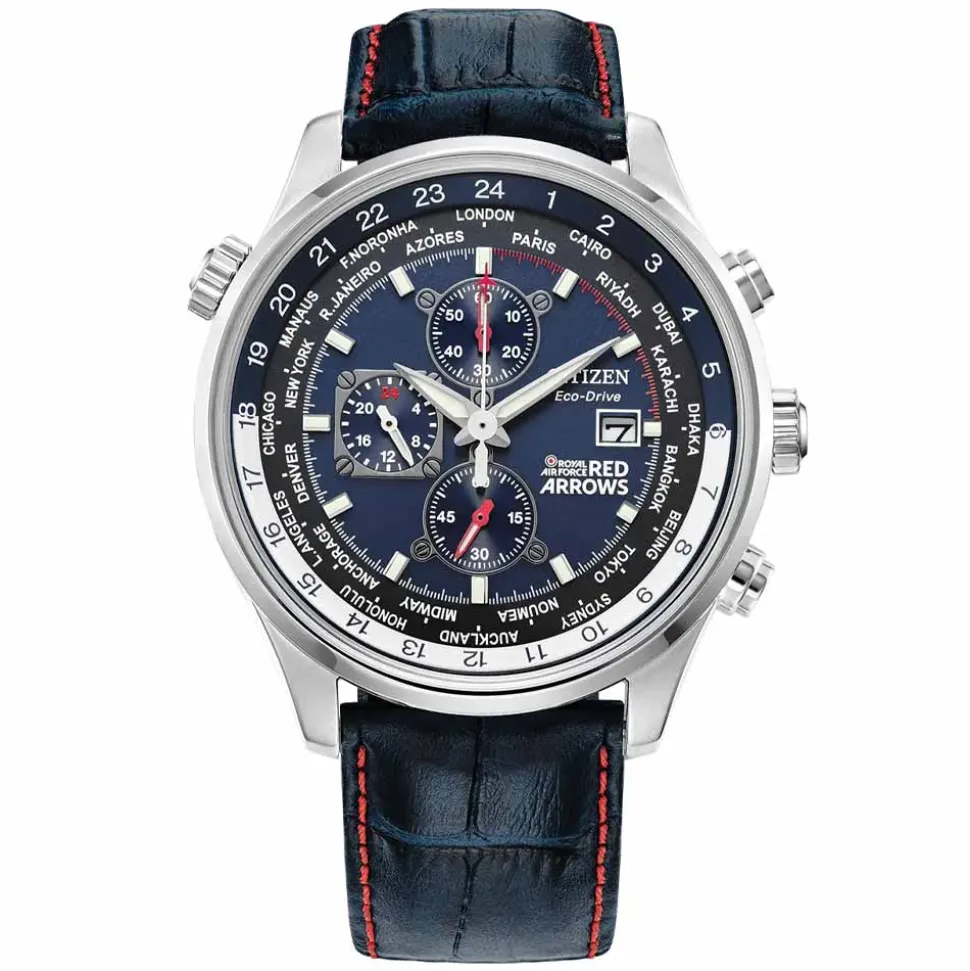 Take to this skies with this Citizen Red Arrows Chronograph with Blue Strap. Inspired by the Royal Air Force Engineers and Support Team, it features the instantly recognisable ‘blue’ on the dial of the support team’s uniform.