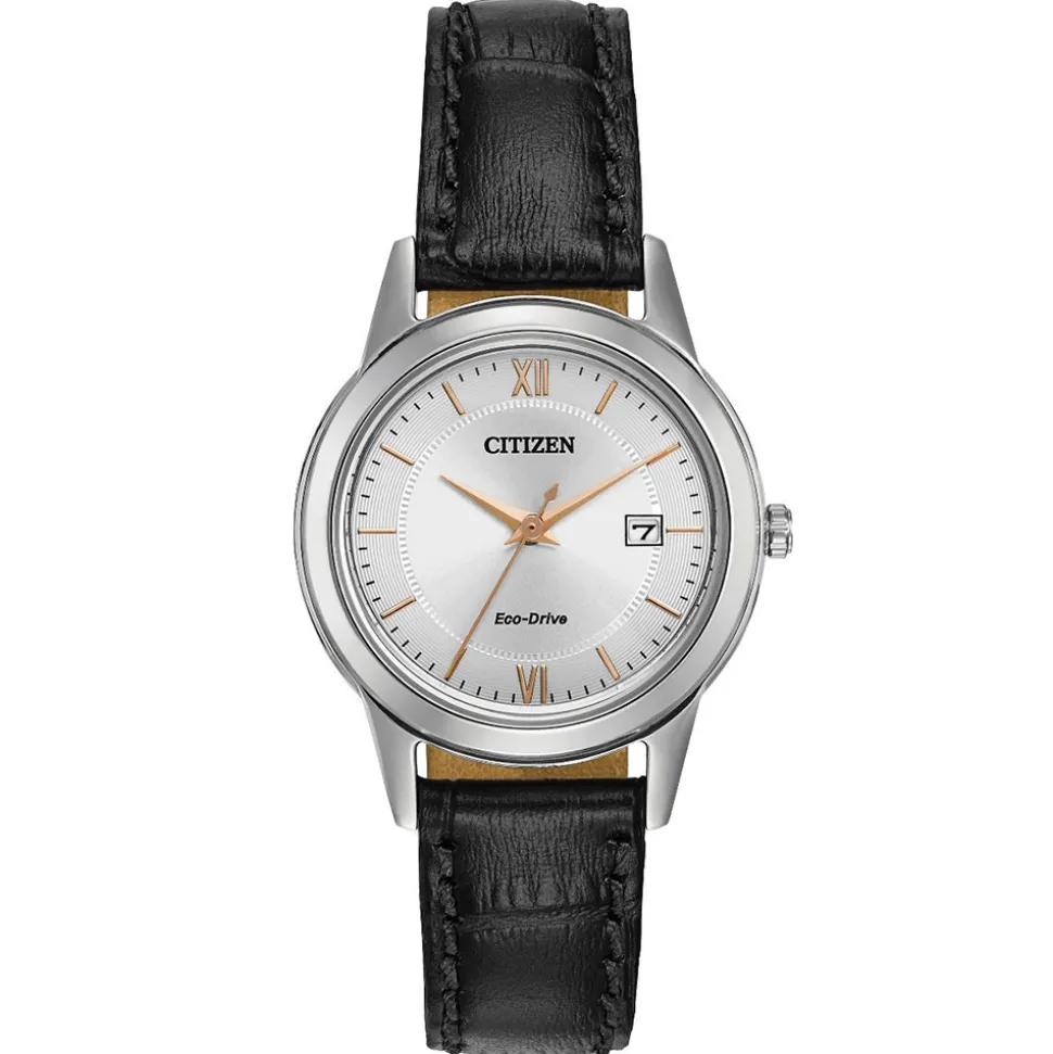 Keep it simple with this Women’s Citizen Steel Leather Strap Watch. Crafted from polished stainless steel, the 29mm round case has clean lines for an easygoing look.
