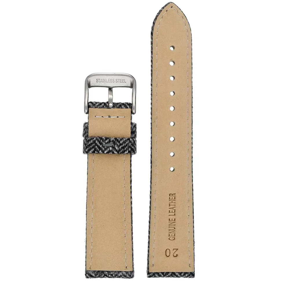 Made from soft wool, this Croft Black Herringbone Wool Watch Strap offers a relaxed yet smart look. Tactile and soft to the touch, it is available in three sizes from 18mm – 22mm.