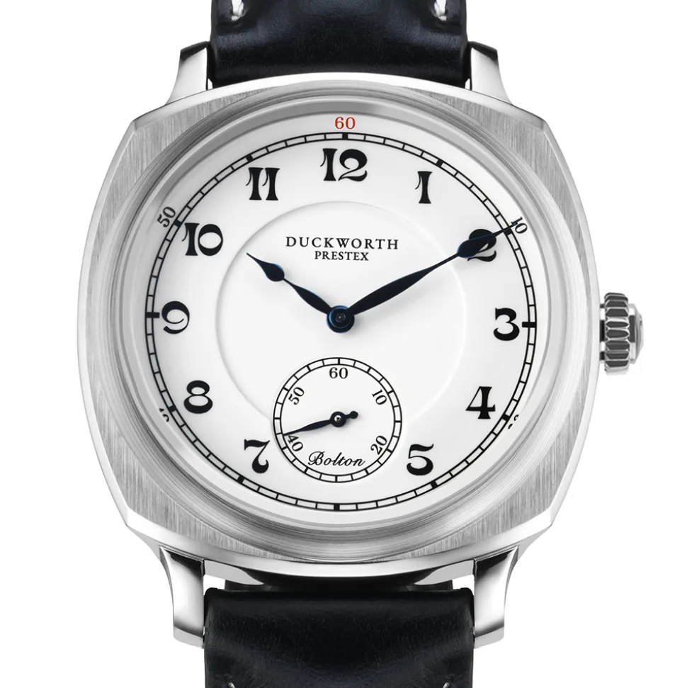 Presented in a black lacquered gift box, the Preston Duckworth Bolton ‘Small Seconds’ is covered by a Two Year Warranty.