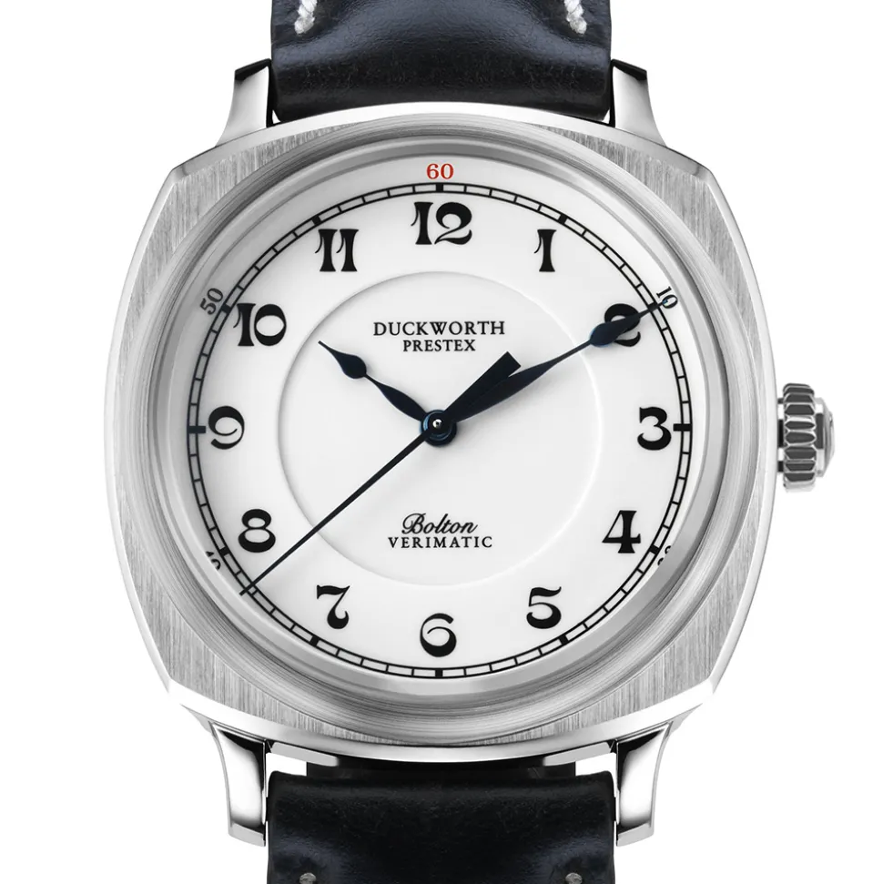 This Duckworth Prestex Bolton Verimatic offers a relaxed look with a classical twist. Inspired by the original 1924 Prestex pocket watch, the Bolton has the same stylised numerals and rail-road minute track. Also, with a reliable Miyota 9039 automatic movement, it is accurate to -10/+30s per day.