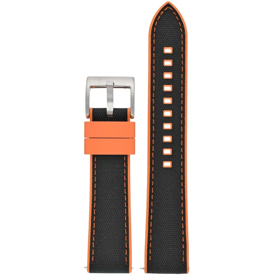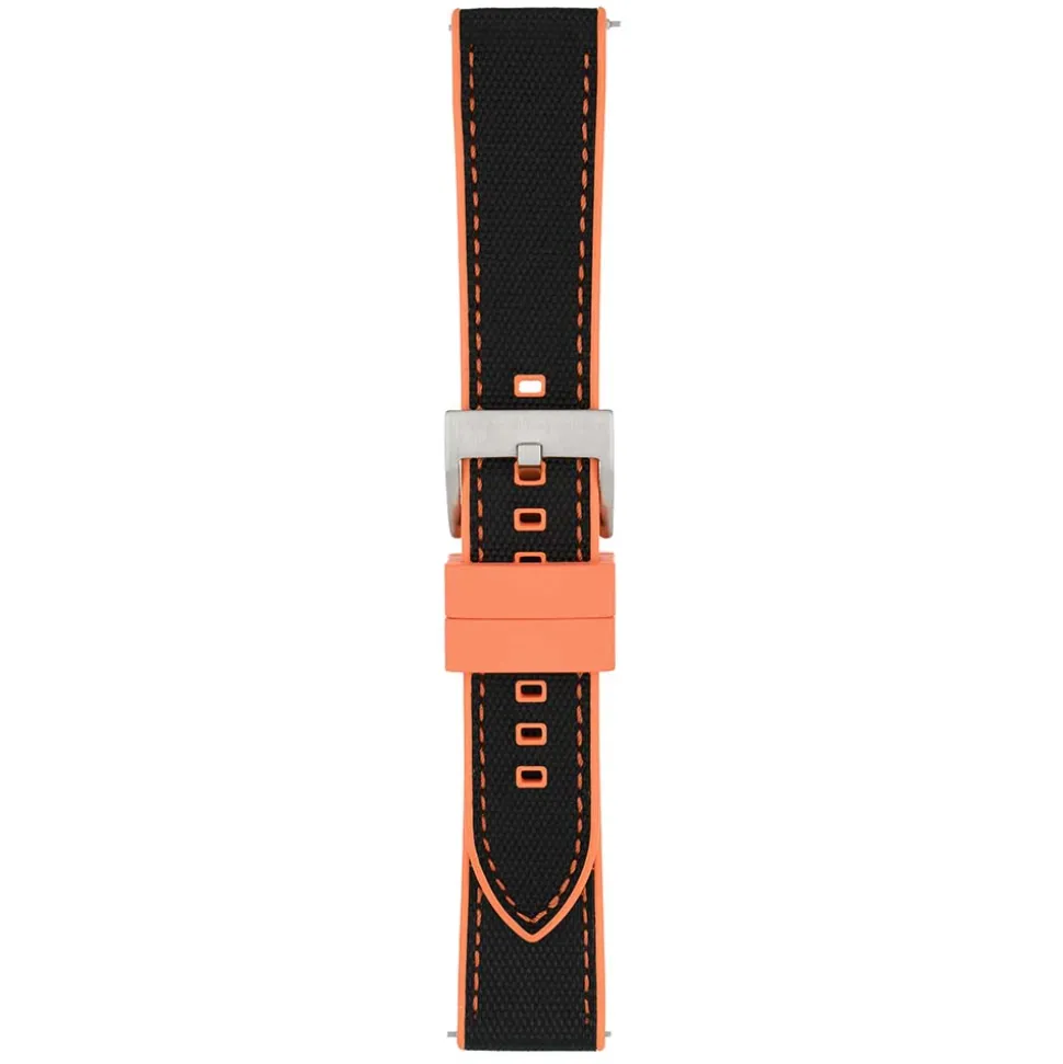 Endura Black and Orange Sailcloth Rubber Hybrid Watch Strap