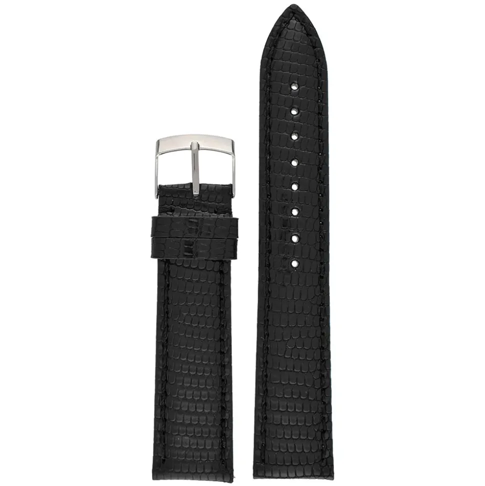 Made from genuine lizard leather, this Firenze Black Italian Made Genuine Lizard Leather Strap is a premium watch strap. Available in 4 popular sizes from 14mm to 20mm, it is the perfect choice for a luxury timepiece.