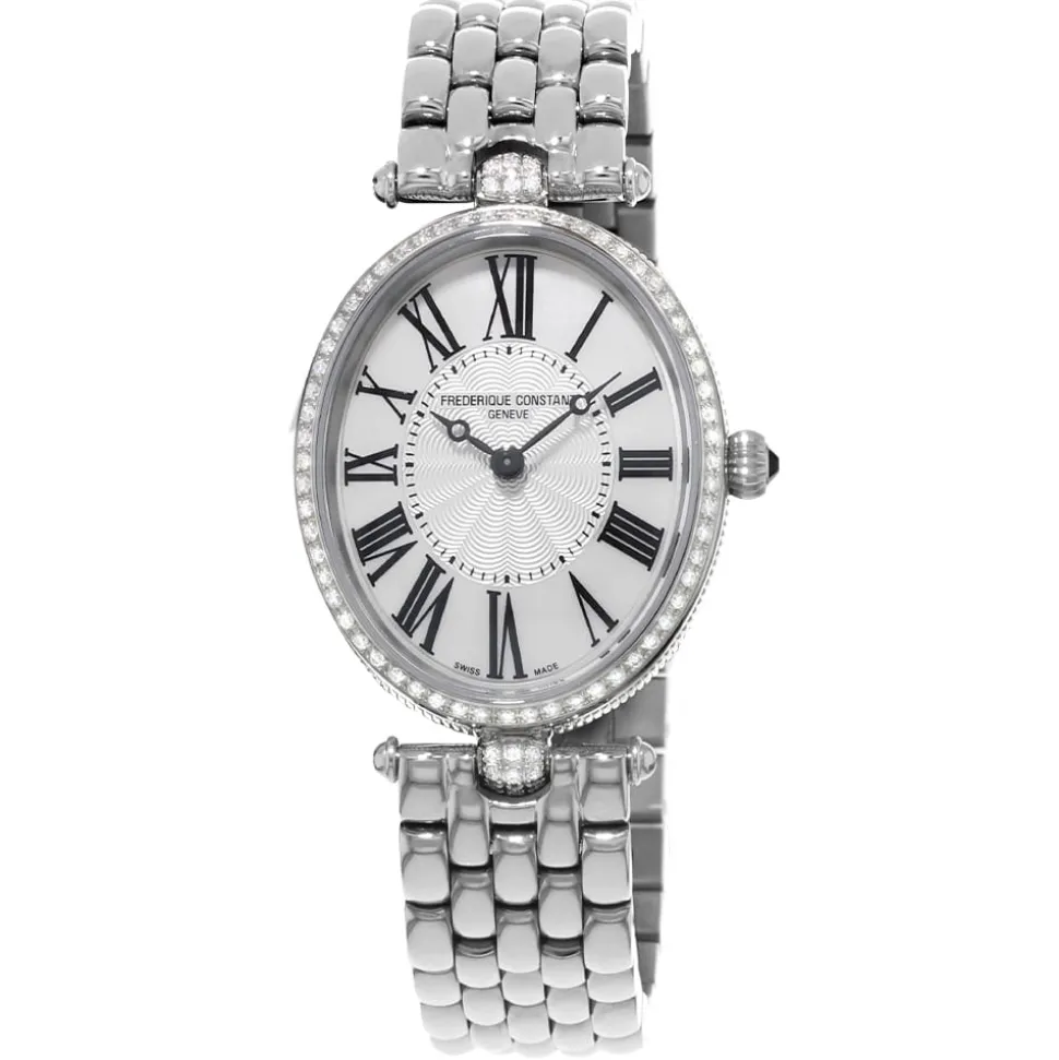 For an elegant timepiece with vintage flair, look no further than the Frederique Constant Art Déco Oval Diamond Watch. From the classics line, this stunning accessory has 76 diamonds set into the case.
