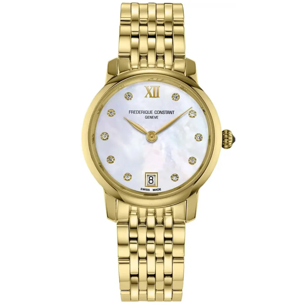 Frederique Constant Slimline Gold Tone Diamond Dial Watch