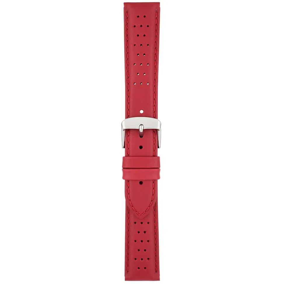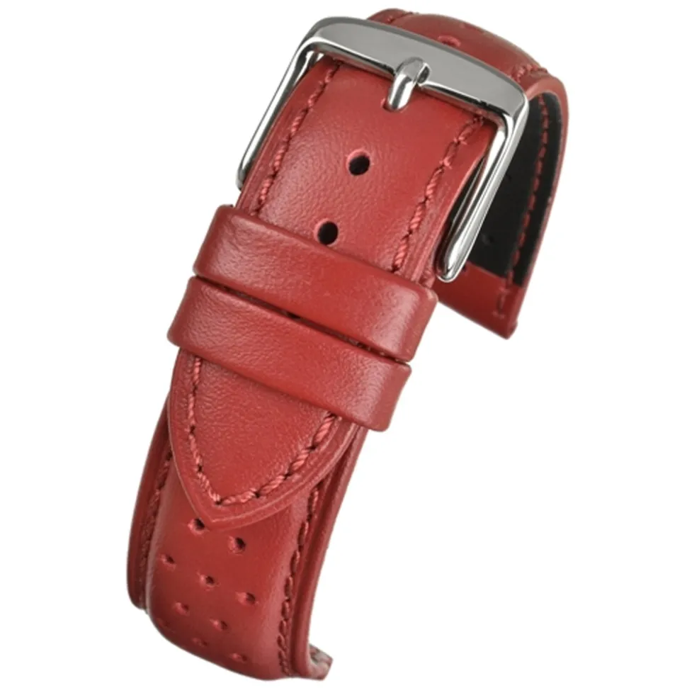 The Goodwood Red Perforated Leather Watch Strap is also available in Brown, Black, Blue and Tan.
