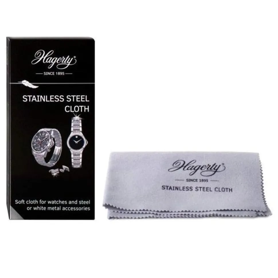 Introducing the Hagerty Stainless Steel Watch Cleaning Cloth. Made from impregnated cotton, it cleans steel and stainless steel items.