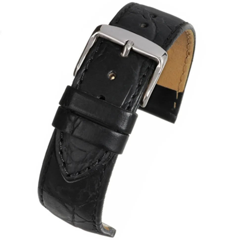 Hampton Extra Long Black Crocodile Grain Leather Watch Strap