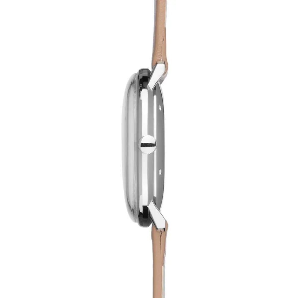 With a 38mm stainless steel case, the Max Bill Automatic has a large dial opening and pared back case with minimal bezel. This ensures that the time is the focus of the watch rather than what is surrounding it. Designed with legibility and accuracy in mind, the dial is in a black finish with printed brown arabic numerals. The hands and dial printing are coated with a luminous substance to ensure legibility in poor light conditions. Fitted with a reliable J800.1 automatic movement, the watch has a power reserve of up to 38 hours. Finally, the supple leather strap highlights the colour of the hour numerals in a tan colour.
