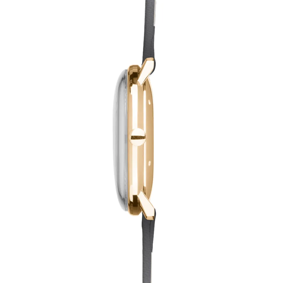 - Grey 20mm leather strap with PVD coated stainless steel pin buckle