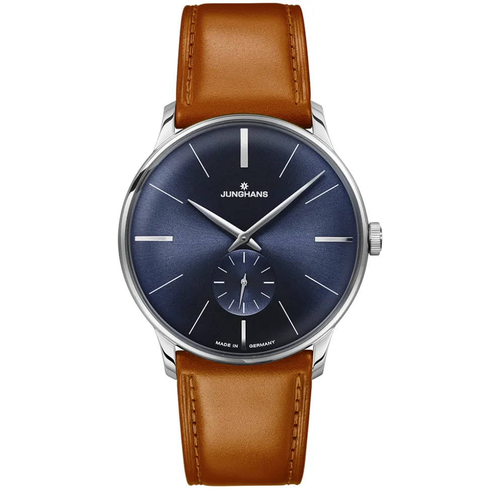 Firstly, the reliable J815.1 hand-wound movement is housed within a 37.7mm diameter case. With a 42 hour power reserve, the workings can be viewed through the see-through caseback. Secondly, the dial is in a stunning blue sunray finish with applied hour indexes. Additionally, the hour and minute hands complement the dial in an elegant tapered shape. Furthermore, the seconds are displayed on a subsidiary dial which adds to the classic allure of the timepiece. Moreover, a sapphire crystal protects the dial. Also, the watch is water resistant to 30m. Finally, a brown horse leather strap provides the finishing touch and a stainless steel pin buckle secures it to the wrist.