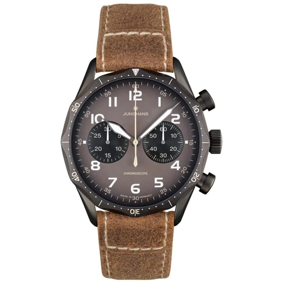 Reignite your fascination with flying with the Junghans Meister Pilot Chronograph. Junghans have been passionate about flying since the 1930’s when they produced on board clocks for aeroplanes and airships. Moreover, in 1955 they launched the legendary Bundeswehr Chronograph for the German military which referenced the instrument layout of a cockpit.