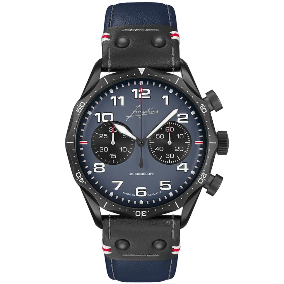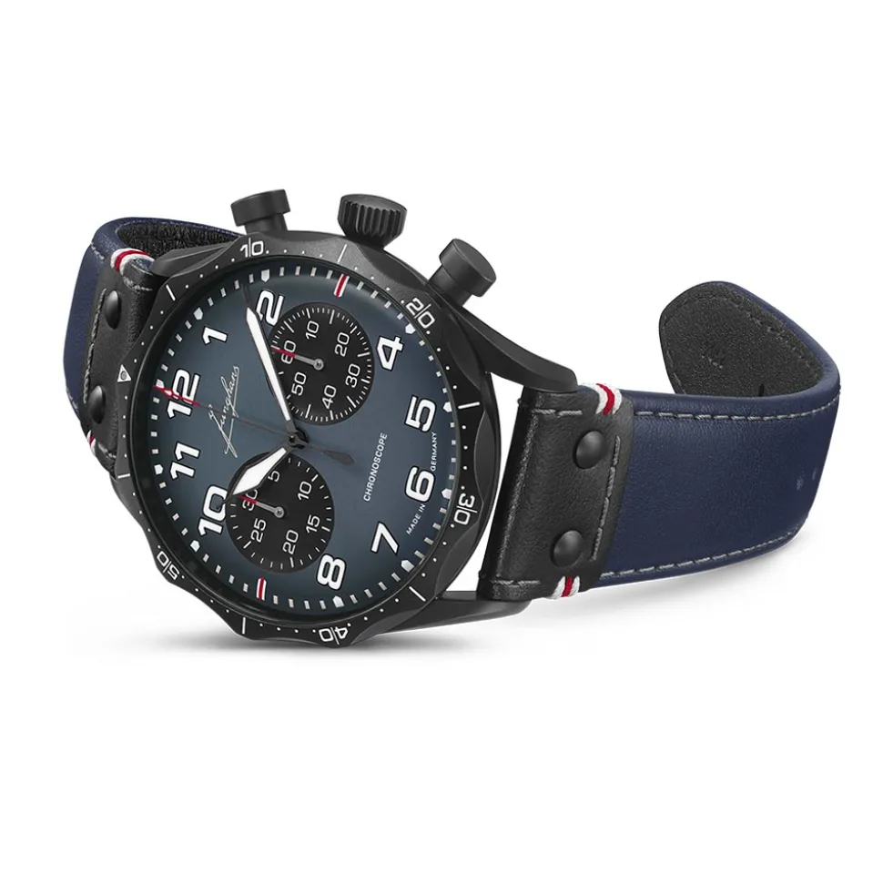 Ignite your love for flying with the Junghans Meister Pilot Chronoscope in Navy Blue. Passionate about flying since the 1930’s, Junghans crafted on-board clocks for planes and airships. Also, in 1955, they launched the legendary Bundeswehr Chronograph for the German military, inspired by cockpit instrument layouts.