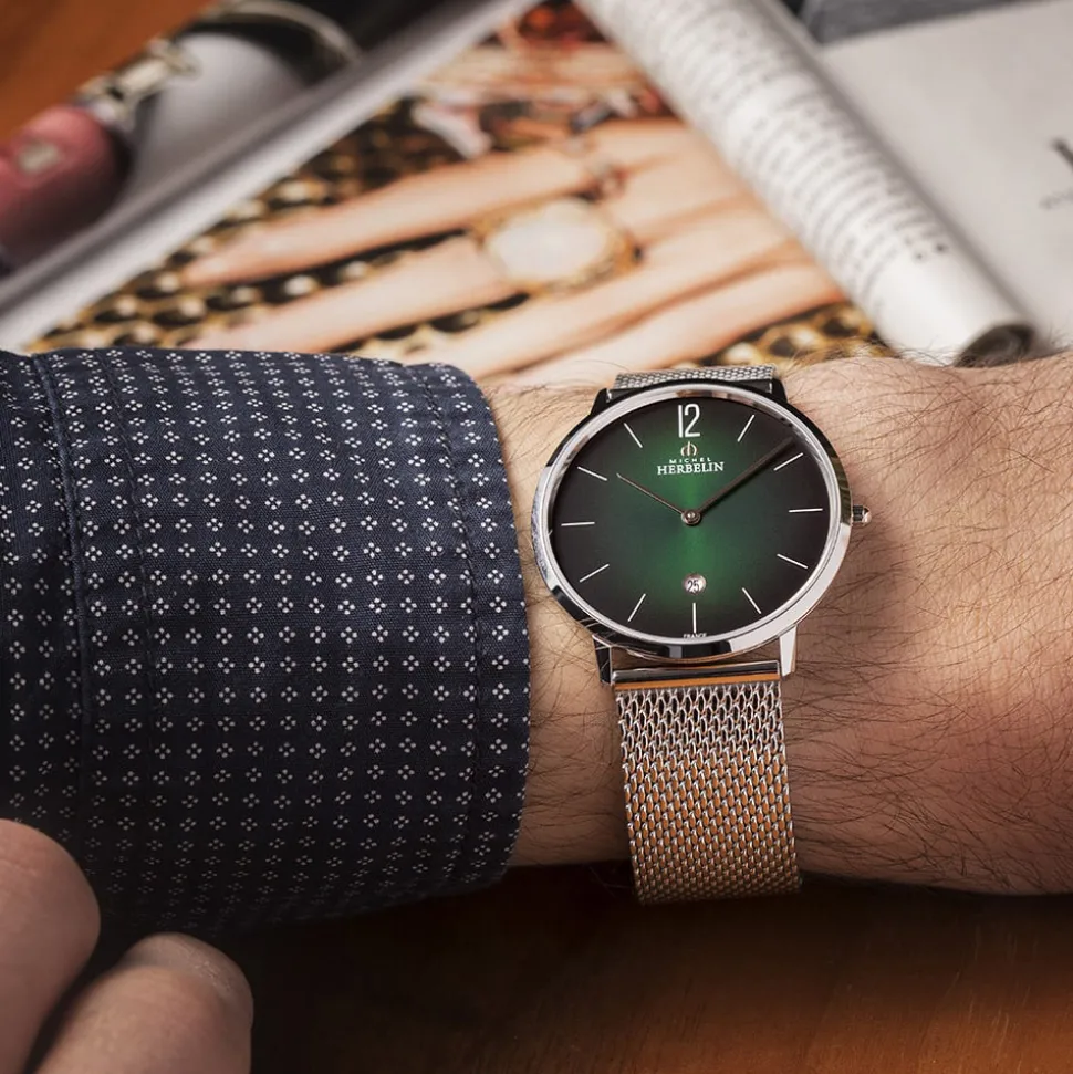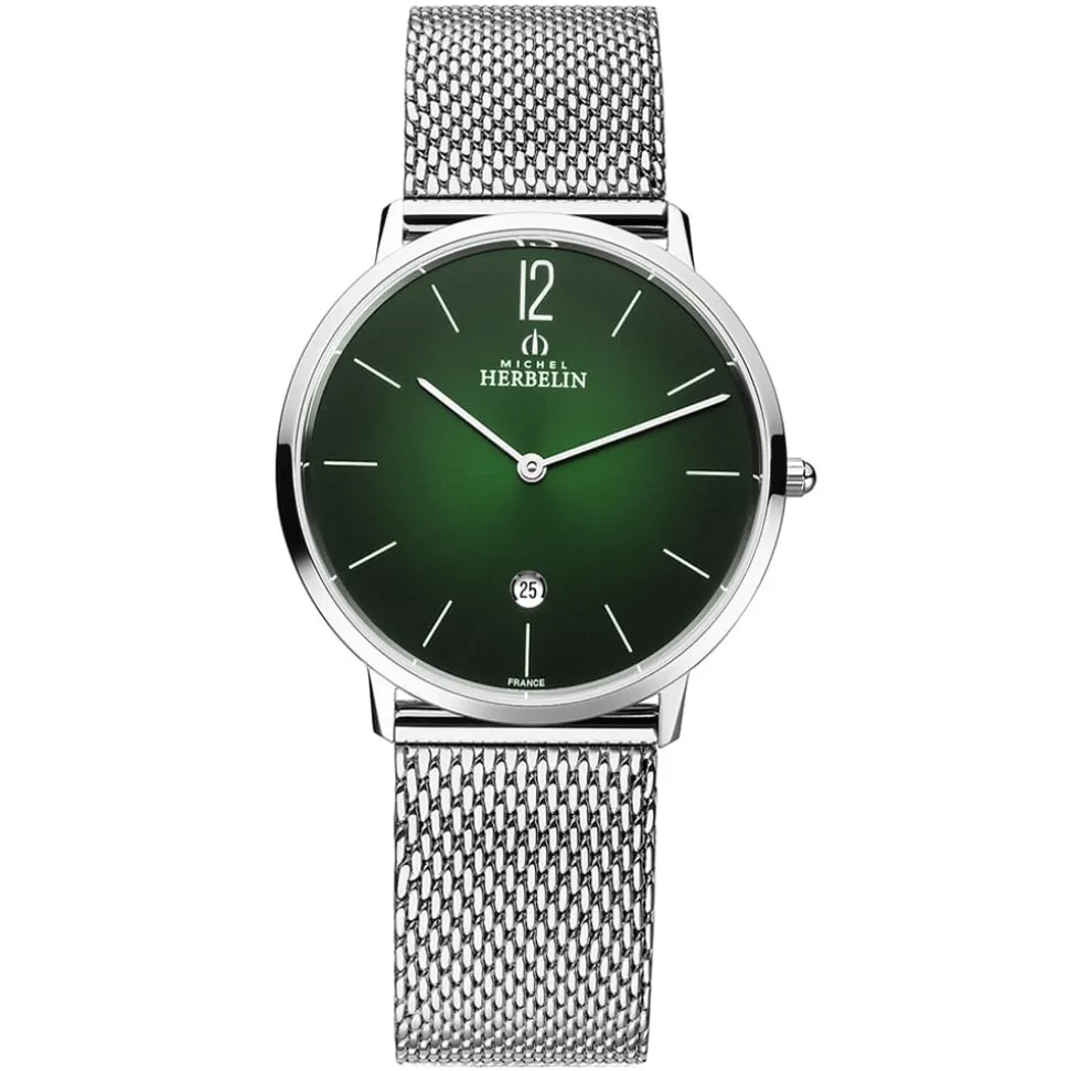 With it’s slim steel case and sharp detailing, the Michel Herbelin City Green Dial Watch is a subtle fashion-forward take on the classic men’s timepiece. This green dial version has a contemporary feel and retains the pared-down look which is characteristic of the collection.