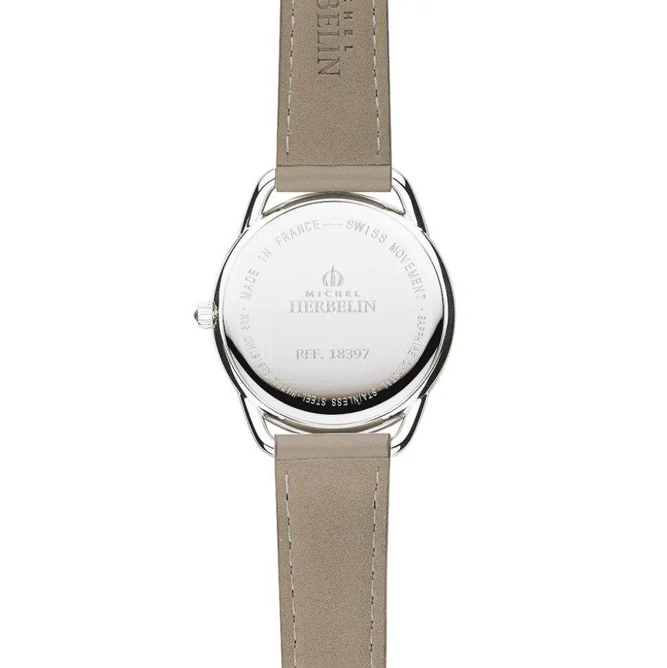 The Michel Herbelin Equinoxe Taupe Leather Strap Watch is perfect for everyday use. Keep it classic with a white shirt or dress it up for an occasion with other accessories. For complete peace of mind, it is covered by a two year manufacturer’s guarantee.