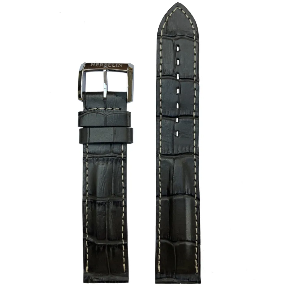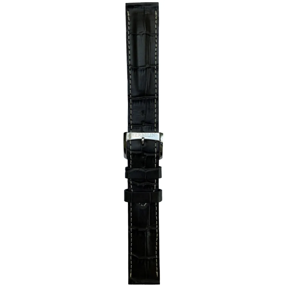 Michel Herbelin Grey Croc-Grain Newport Leather Watch Strap 12264