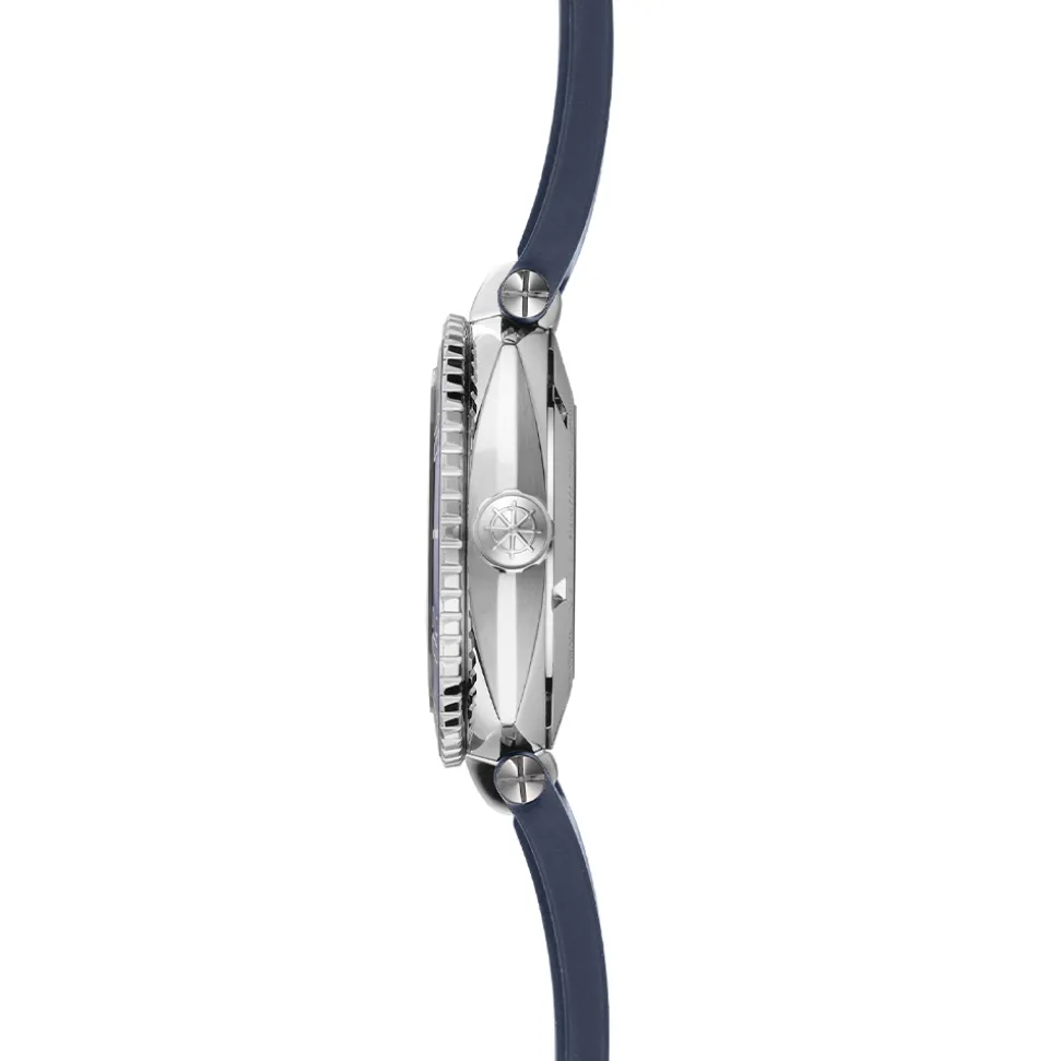- Blue FKM rubber strap (covered by 10 Year Warranty), stainless steel deployant buckle with diving extension