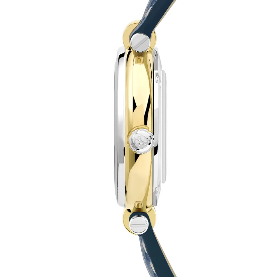- Polished stainless steel and yellow gold PVD case with brushed steel bezel, 29 mm diameter