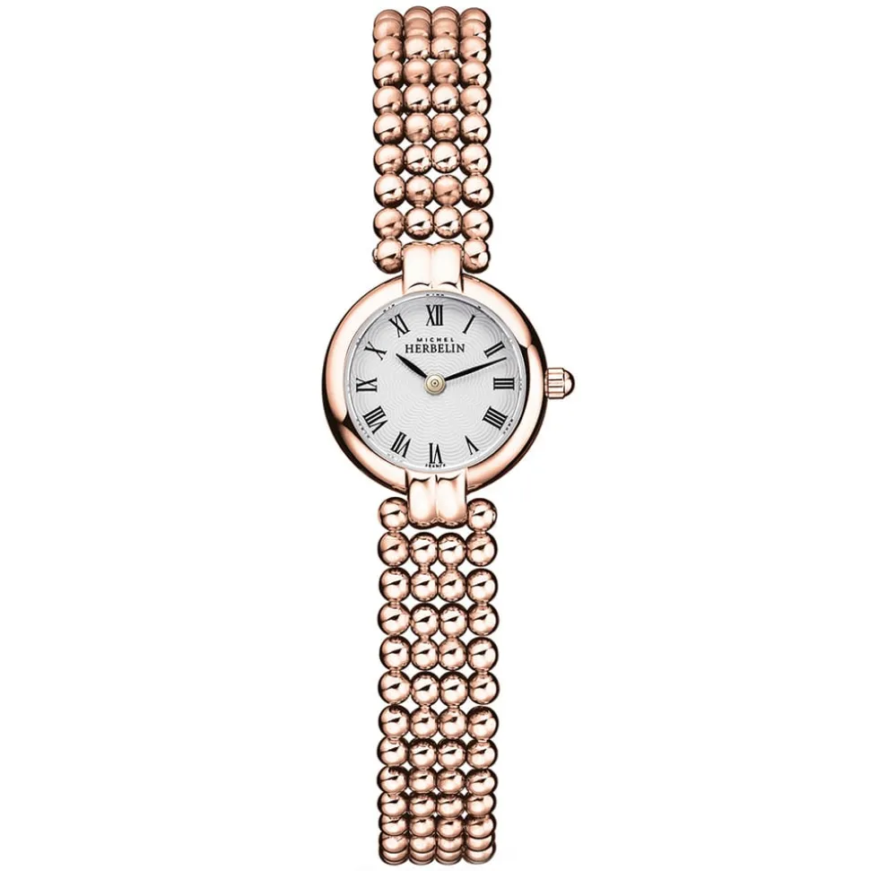 This ultra-feminine Michel Herbelin Perle Rose Gold Plated Watch is a signature Herbelin design. Now available in this new mini 21mm case size, it is a piece of jewellery that also tells the time.