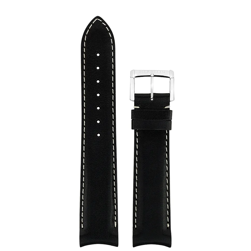 FORBES Matt Finish Black Heavy Padded Leather Watch Strap W971