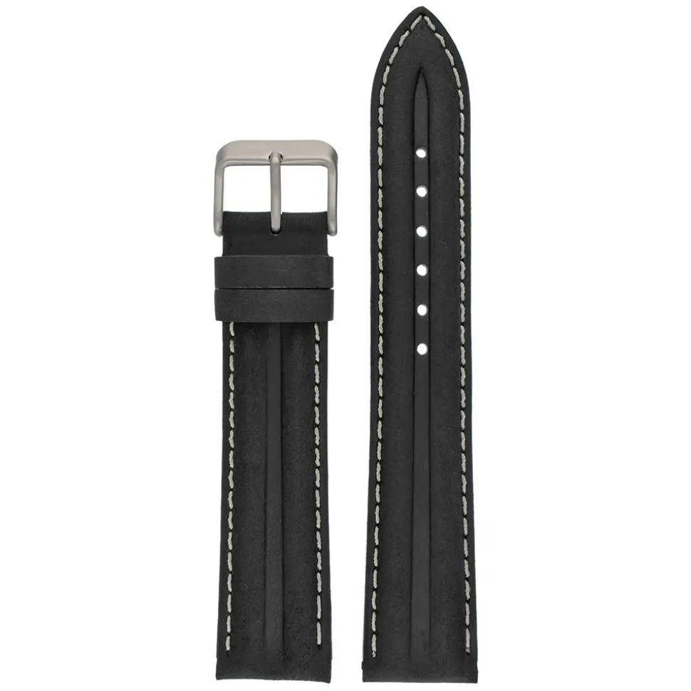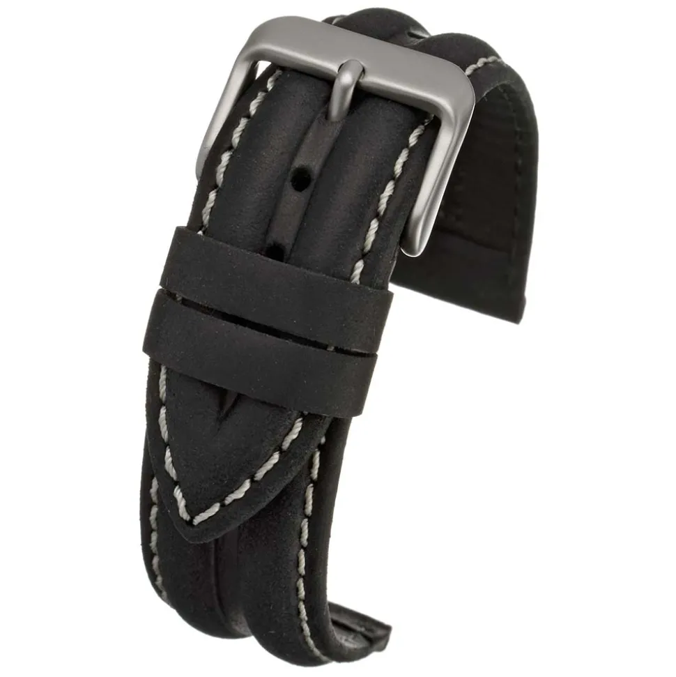 Made from high-grade genuine leather, this Miles Black Double Ridge Leather Watch Strap is available in four sizes from 16mm – 22mm.