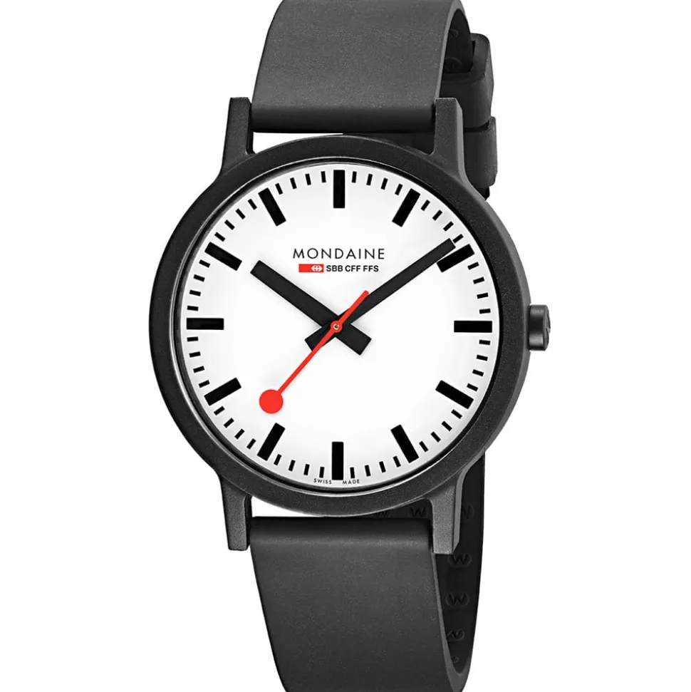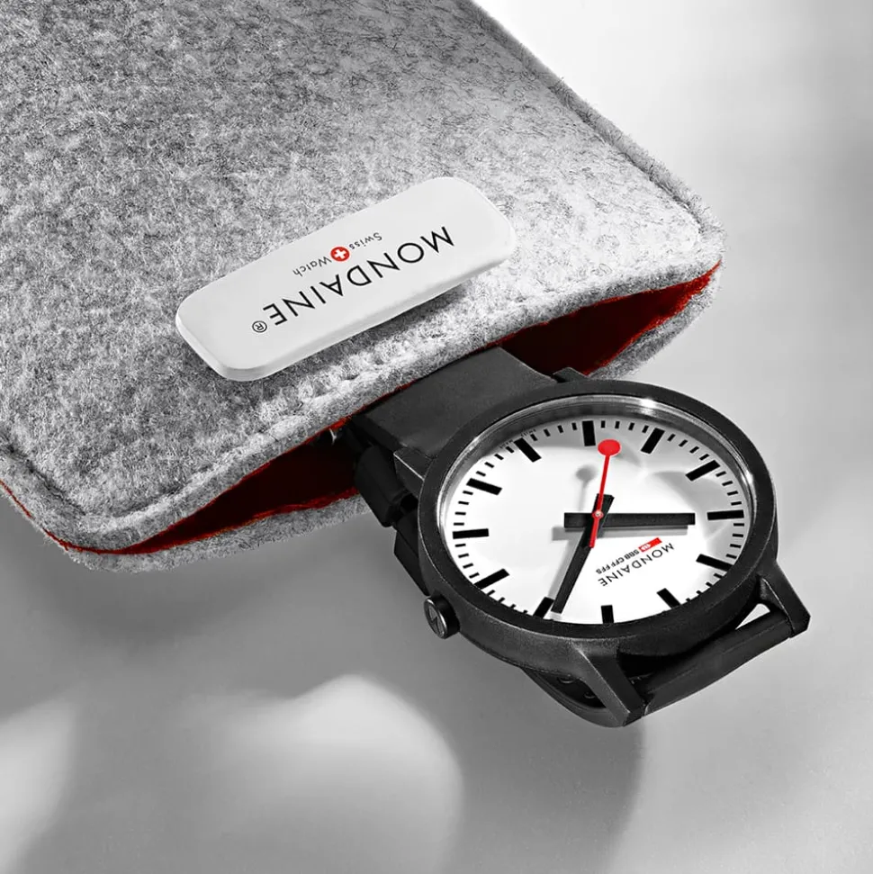 Combining innovation with sustainability, the Mondaine Essence 41mm Vegan Sustainable Watch utilises renewable raw materials such as castor oil and natural rubber. Mondaine have used the latest technologies to produce this collection with even the packaging made from 100% recycled PET bottles. Designed to be kept rather than thrown away, the packaging is a pouch that can be repurposed as a mobile phone case.