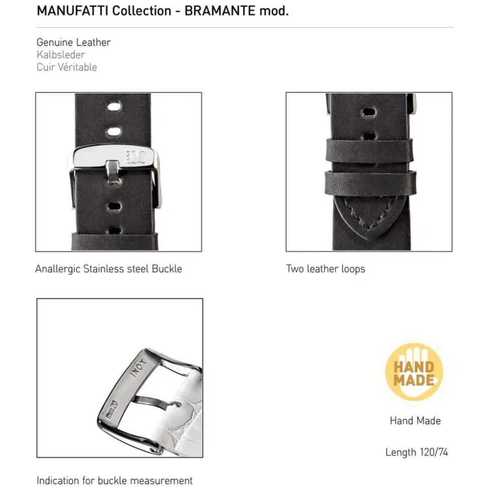 Handmade by skilled artisans at Morellato in Italy, the Bramante Black Vintage Calf Watch Strap is made from the finest Italian leather. Using only the best vegetable-tanned hides, the Bramante strap demonstrates the highest levels of craftsmanship.