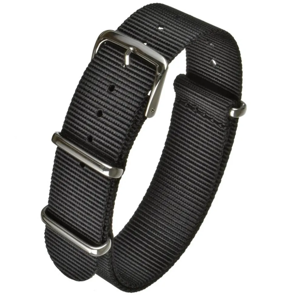 Available in 4 popular sizes from 18mm to 24mm, our NATO strap is made from durable nylon. The oval buckle and keepers are in matt stainless steel.