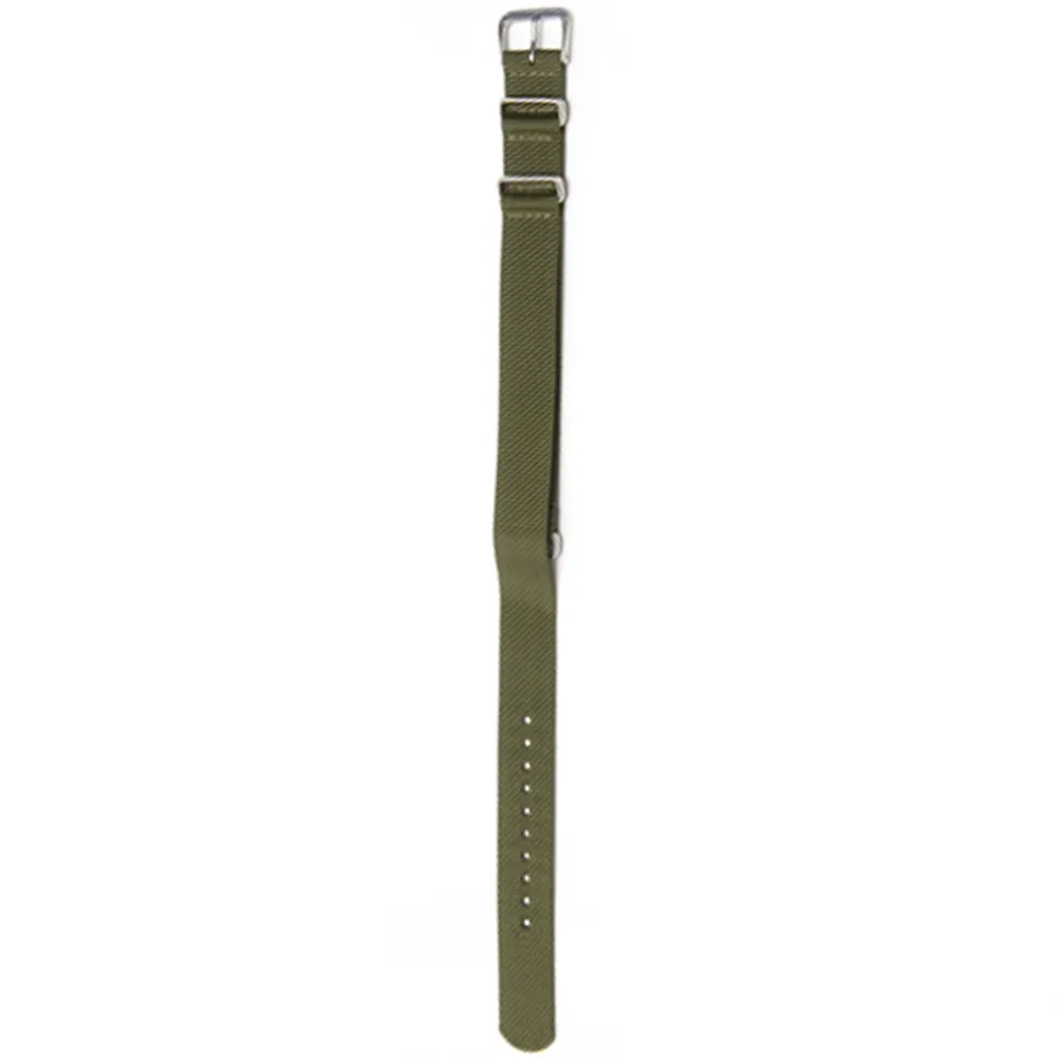 Our NATO Green Watch Strap offers comfort, practicality and pared-back style. Hugely popular in recent years, the NATO strap threads underneath the watch case. An additional flap also goes underneath the case and passes through a buckle. This ensures the security of the watch in case one of the spring bars should fail. The NATO strap followed on from the Zulu which was originally developed during WWII for pilots and the military. This style of strap could be fitted to a watch case with solid lugs therefore making the watch more durable.