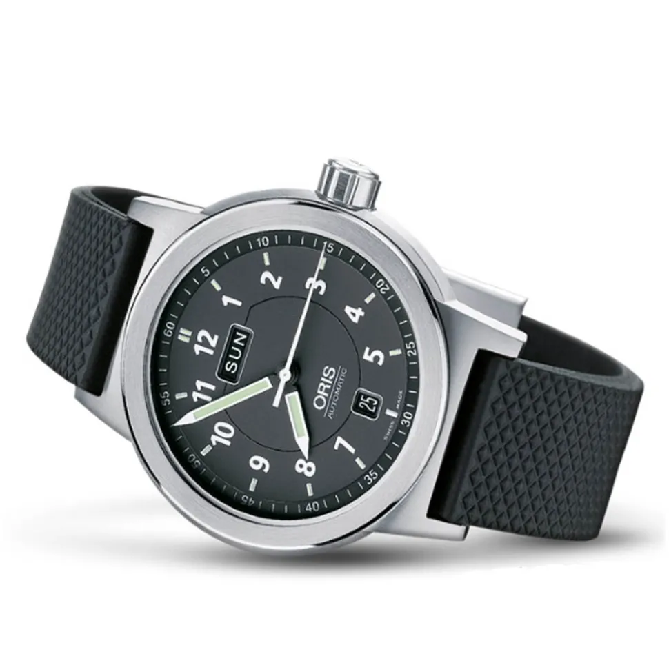 The Oris Black Rubber Strap fits a case with an interhorn width of 20mm.