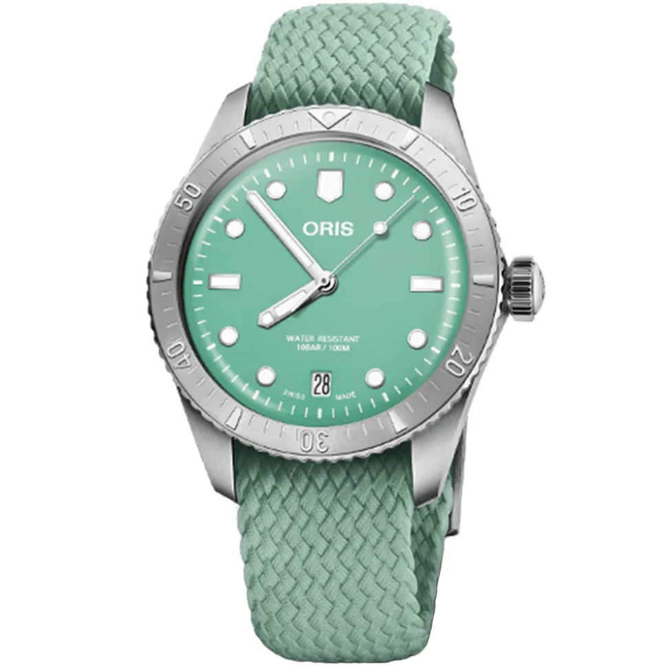 Oris Diver’s Sixty-Five ‘Cotton Candy’ Green Dial 38mm Perlon Strap