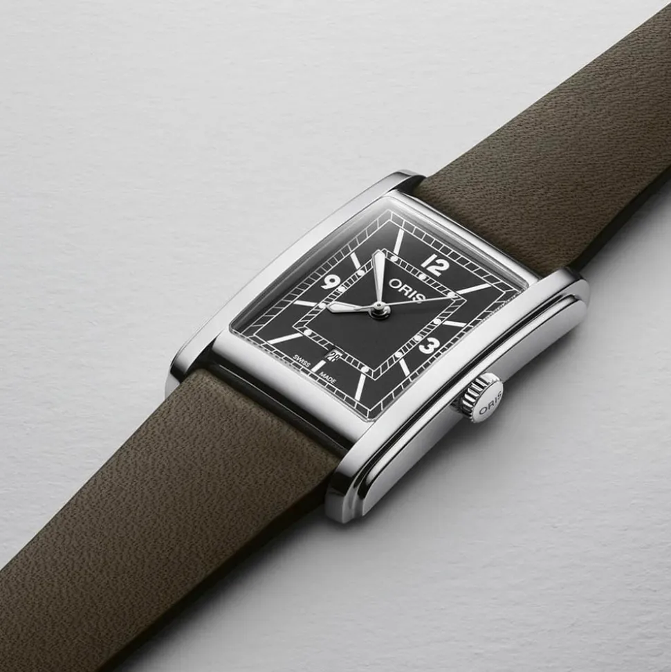 With its Art Deco infuence, the Oris Rectangular Green Dial Watch strikes the right chord between vintage style and modern flair. Perfectly proportioned as a unisex watch, the 25.5mm diameter case suits all wrist sizes for a look that is dressy but natural and understated.