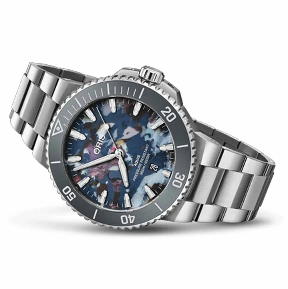 Firstly, made from high grade Stainless Steel, the Aquis Bracelet delivers a timeless look while offering exceptional durability for everyday wear. Additionally, the secure folding clasp includes a convenient push-button release and an extension for added comfort and adaptability. Furthermore, the clasp features the iconic ORIS stamp, highlighting its authenticity and premium craftsmanship.