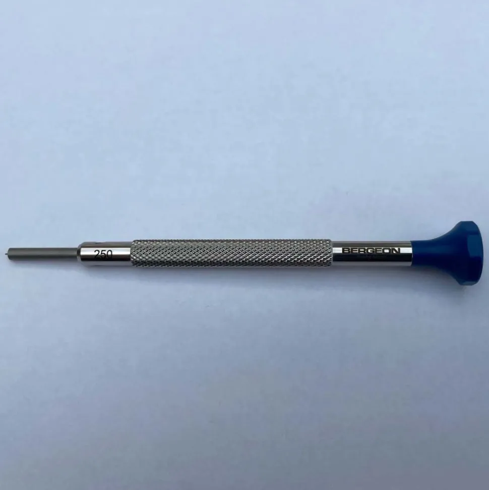 This Oris Triwing Bergeon 2.5mm Screwdriver Tool ref 30 0773X is for changing straps and bracelets on the 43.5mm and 41.5mm Oris Aquis models. The 43.5mm Aquis model takes a 24mm strap and the 41.5mm model takes a 22mm strap.