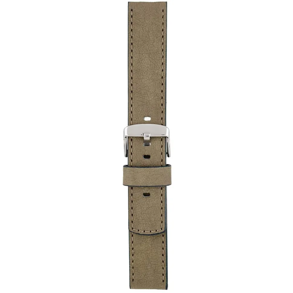 Secondly, the polished stainless steel buckle adds to the modern feel with a wide tongue. The strap has corresponding oval holes.